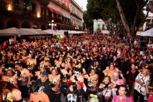Puebla, Pue., a 26 de octubre de 2025. — En el marco de la celebración del Día de Muertos, el Gobierno de la Ciudad que encabeza Pepe Chedraui, a través del Instituto Municipal del Deporte de Puebla (IMDP), dirigido por Ricardo Zayas Gallardo, realizó el Festival de Activación Física Musicalizada, con la participación de 47 grupos provenientes de diferentes colonias, barrios, unidades habitacionales y juntas auxiliares de la capital.